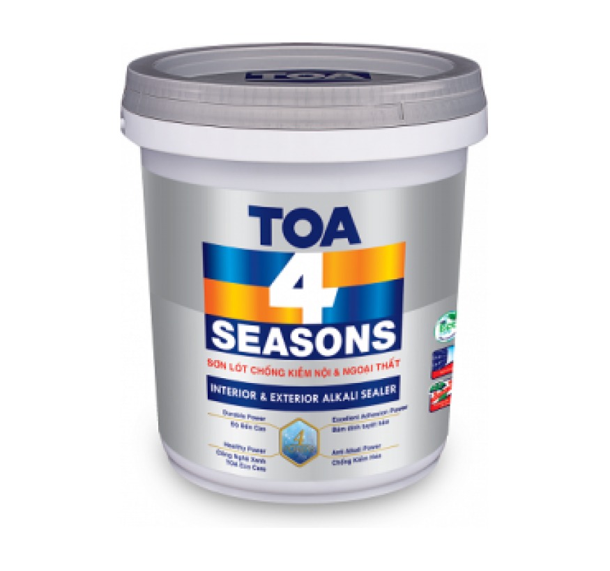 Sơn lót Chống kiềm TOA 4 Seasons có tính năng chống kiềm hóa, muối hóa hữu hiệu cho bề mặt thạch cao, xi măng, bê tông và chống nấm mốc. Sơn lót Chống kiềm TOA 4 Seasons không chứa chì và thủy ngân. |